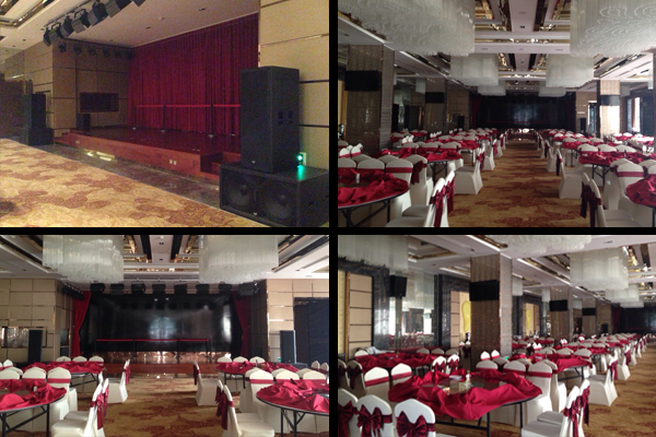 4.山东济南学府大酒店是由山东工业大学按星级标准建设的涉外宾馆,酒店可容纳数百人同时就餐,并提供多种类别的客房、商务中心、美容中心、大中小型会议室等服务。学府大酒店的扩声系统的设计要求充分考虑本身的实际使用功能,通过股东的多轮投票一致决定选用极悦娱乐音响公司旗下的德国ACAIF系列音响及配套灯光等设备。