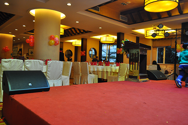 所谓内置式的架设就是发音范围由表演的舞台上,声音终结区也是在舞台范围内 (两张所附的图例,都算是内置式的架构)。