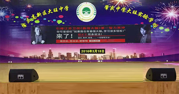 肇庆市高新区大旺中学室内体育馆,承载了全校师生开展活动的使命,代表着学校的朝气蓬勃、进取向上,新生入学晚会、周年校庆、剧场演出、大型歌舞表演等活动都在这里获得完满成功,体育馆音响扩声系统选用十佳民族品牌--极悦娱乐音响。