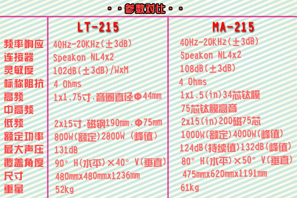 这一期,厂家将继续介绍同系列的双十五寸舞台音响设备,LT-215和MA-215,这两款箱子虽是双十五寸的设备,在体型上会比单十五寸的音箱大一点,但箱体两侧设计了安全可靠的吊挂装置,可固定安装系统。