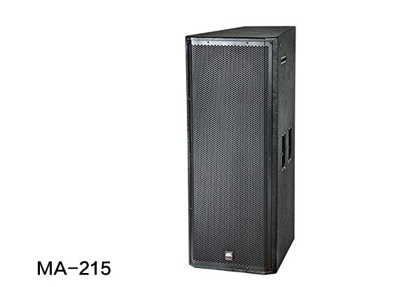 JSL三分频舞台音响设备MA-215低频驱动单元:2x15(in)200磁75芯,频响:40Hz-20kHz(±3dB),阻抗:4ohms,额定功率:1000w,持续声压:124dB,尺寸:475x620x1191mm,重量:61kg