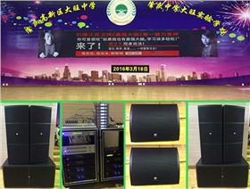 为了营造更好的活动开展氛围,大旺中学选择与极悦娱乐音响厂家合作,为学校室内体育馆量身定做了一套专业舞台音响方案,采用4只JSL品牌中远程系列音响TW-3作主音箱,4只十二寸辅助音箱,4只CU-15返听音箱,2只双十八大功率超低音音箱以及功率匹配的专业功放,16路调音台、时序器,数字处理器,效果器,8套头戴麦等一系列周边设备,该音响系统经资深工程师亲自调试,与演讲现场完美结合,让整个体育场馆声场均匀,使现场演出的环境更加炫酷、活力。