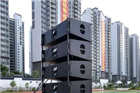在扬声器的选择上,LA双十线阵音箱系统配备钕磁低频单元和钕磁高频单元,拥有声压级大、覆盖均匀、指向性强、远近场音量区别小的特点,优良的瞬态特性和相位特性使整个LA系列音箱系统在解析度、还原度及声像定位方面均得以优化。LA双十线阵作为主扩应用于高文小学风雨操场,搭配AU系列补声,可以在现场将其高能量、宽频响的特点和完美的音质效果体现的淋漓尽致。