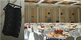 极悦娱乐南京线阵音响成功应用于南京某大酒店宴会厅。既为婚庆喜宴等活动提供美妙音乐,又不影响宴会厅的整体美观,是实用又美观的线阵音响。宴会厅扩声系统采用了JSL LAB系列6+2小型南京线阵音响为主扩声,舞台前方合理分布4只CU-12音箱做为舞台补声,以及防啸叫无线话筒及周边设备等。