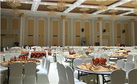 南京大酒店宴会厅装修富丽堂皇,是当地上档次的宴会场所,选用极悦娱乐LAB系列线阵音响做主扩声,显然是眼光独到,科技产品让宴会厅增添一道风景线,音响音质无可挑剔,完全融入环境气氛当中。