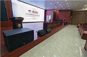 汝城人民医院报告厅应用的极悦娱乐音响专业扩声系列,配置了经久耐用、品质优良的扩声设备,保证整个会议室的每个角落的声场听觉均匀,没有出现失真、偏音、混音、回响等不良音响效果。