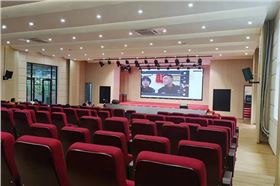 为完善该校报告厅设施建设,构建更好的室内活动开展氛围,极悦娱乐音响为其报告厅设计了一套专业扩声系统解决方案。报告厅主扩声系统采用线阵式音箱,配套壁挂音箱,音响系统经工程师亲自调试,设备与场馆完美结合,使现场的环境更加炫酷、活力。