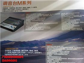 1、调音台:具有多个信道输入,每个信道的声音可以进行单独的加工处理,并且拥有左、右声道、混合、监听等输出的一种声音混合设备。是音响师、录音师和作曲家进行音乐、声音创作的重要设备。