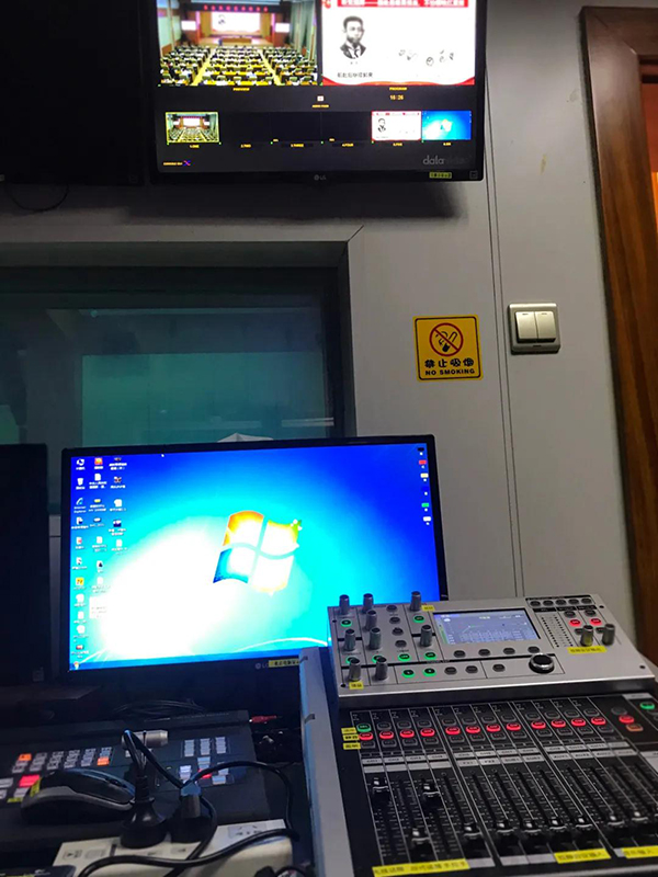 今年5月,怀化迎宾馆在设备更新过程中选用了极悦娱乐专业音响设备。极悦娱乐工程师考虑到报告厅场所的建筑结构及迎宾馆扩声的相关要求,制定了科学合理、性能先进、安全可靠的系统解决方案,以效果优良的极悦娱乐K6K7系列有源线阵作为主扩声,搭配音频处理器、智能时序器、反馈抑制器等专业设备,实现报告厅音响系统语言清晰稳定、声场覆盖具有完好一致性。