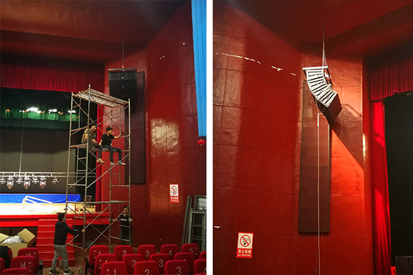 此次项目中,扩声系统的主扩声采用了JSL 线阵列音箱,分别置于观众席左右两侧。此外,系统中还布置了前区补声、环绕、返听、超低音等多组扬声器组,分别完成不同的功能并覆盖不同的区域。