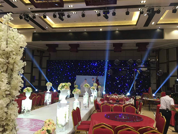 于都县某宴会中心是当地一家大型多功能厅,也是一家综合性婚庆酒店,主要是以婚庆、宴会为主,灯光音响系统采用极悦娱乐品牌设备,阵容相当强大。会场大堂的灯光音响系统工程经过半个月的安装布线、音响调试,目前已正式使用。