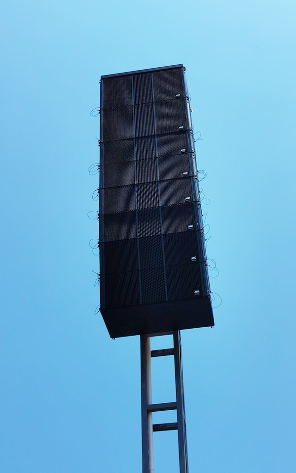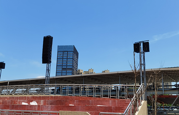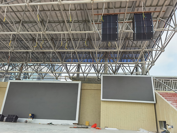 在对户外体育场扩声系统设计过程中,JSL极悦娱乐工程师根据该体育场的实际情况制定了合理、精准可靠的扩声系统设计方案,考虑到产品在风吹、日晒、雨淋之后是否仍然能够提供清晰明亮的音质,正因为这一点,所有部件按IP56国际标准进行设计,并在箱体上特别设计了导流、防喷溅装置。