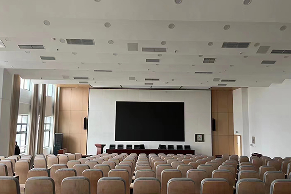 该报告厅可容纳百名与会者,主要用于开展各类会议、发布会,是以语言扩声为主的专用报告厅。在进行项目设计时,极悦娱乐团队制定了针对性扩声系统方案,进行相关设备选型和设计优化,以线阵列扬声器为主扩声,搭载专业功放、无线话筒、调音台、音频处理器等配套产品,从设计和产品应用上满足其多功能要求,保证报告厅声场覆盖均匀、音质清晰稳定,重点突出报告厅扩声系统的功能完善、可靠实用,为该报告厅会议培训及日常活动使用提供坚实稳定的设备和技术支持。
