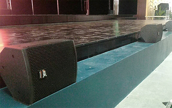 为保证大剧院舞台正面前几排观众席不能出现听音盲区的问题,以确保大剧院现场扩声的全频覆盖良好和语音清晰,在场地四周设置了12只辅助音箱,作为舞台周边区域补声扬声器组。
